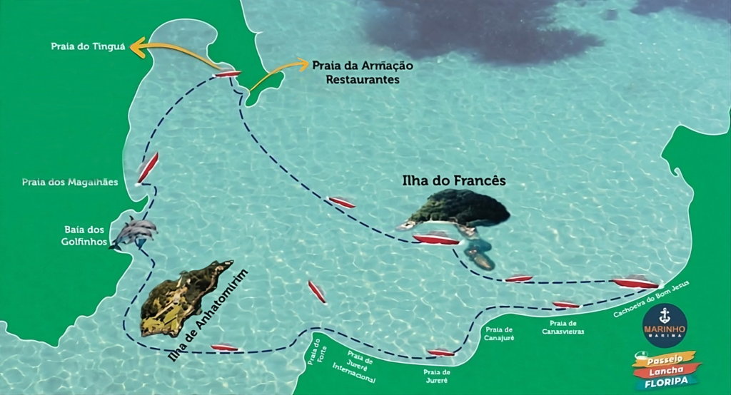 Imagine-se navegando por cenários paradisíacos e águas cristalinas. Embarque em uma experiência única pelo norte da Ilha de Florianópolis com nossa equipe treinada e embarcações selecionadas. No Roteiro Ilhas do Norte, você poderá explorar praias exclusivas e fazer paradas para banho e atividades aquáticas, sempre com o conforto e a segurança que você merece.